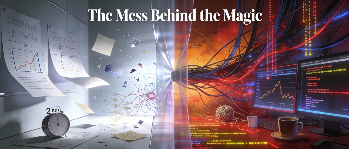 The decision to restart training after 1 trillion tokens. The 2am debugging sessions. The loss spikes that appear from nowhere. The subtle bugs that quietly sabotage everything. These aren’t embarrassing admissions—they’re the reality that polished research papers leave out.