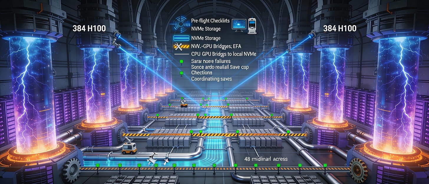 If pretraining is the cake and post-training the icing, infrastructure is the industrial-grade oven. When it breaks, the project halts. The Playbook devotes significant attention to this reality—not as dry specification, but as hard-won operational knowledge.