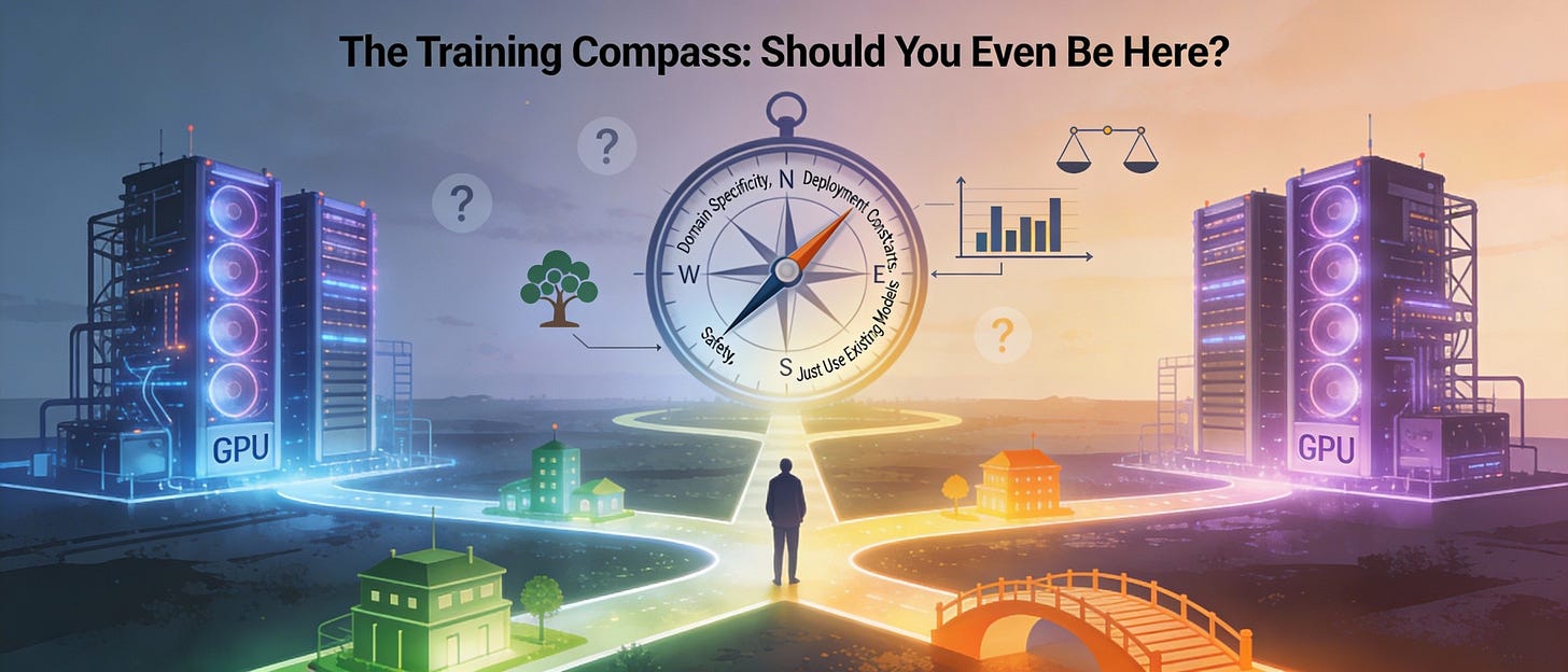 Start with whether to train at all. The open-source ecosystem offers powerful alternatives. Custom pretraining requires legitimate domain specificity, deployment constraints, or governance requirements. Most organizations should fine-tune or prompt existing models.